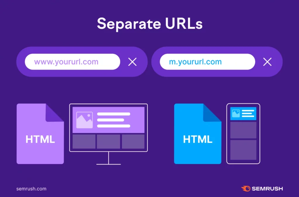 Some sites create an URL that is specific for mobiles alongside their desktop domain. This can enable a highly controlled mobile experience. It takes more time to manage and can hurt search rankings when tags like rel=canonical or rel=alternate are set incorrectly.