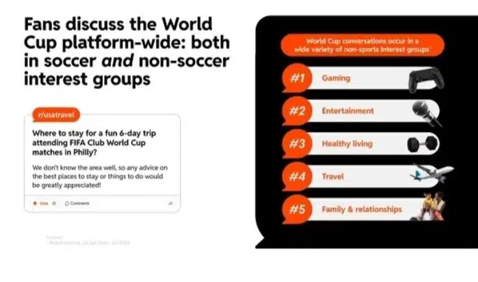 Reddit now serves as the primary source for users who need to find information about major global events. The World Cup provides brands with an opportunity to plan their marketing strategies across different product categories according to Reddit.